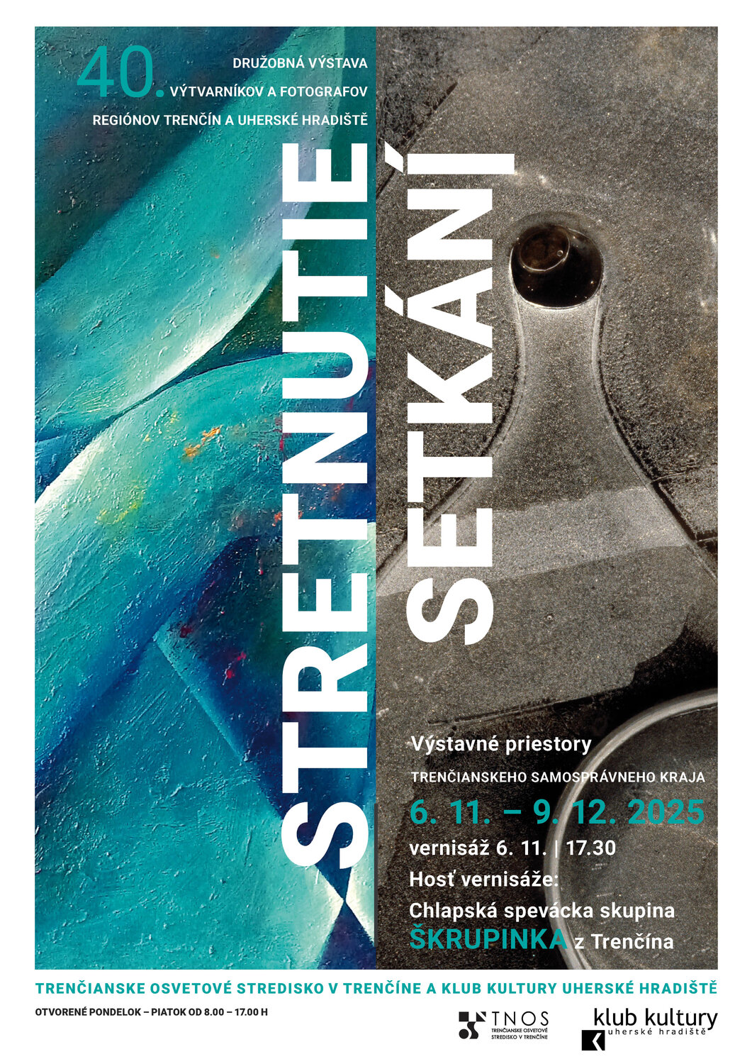 Srdečne pozývame na vernisáž jubilejnej výstavy „40. Stretnutie – Setkání“, ktorá sa uskutoční vo výstavných priestoroch Trenčianskeho samosprávneho kraja od 6. novembra do 9. decembra 2025.