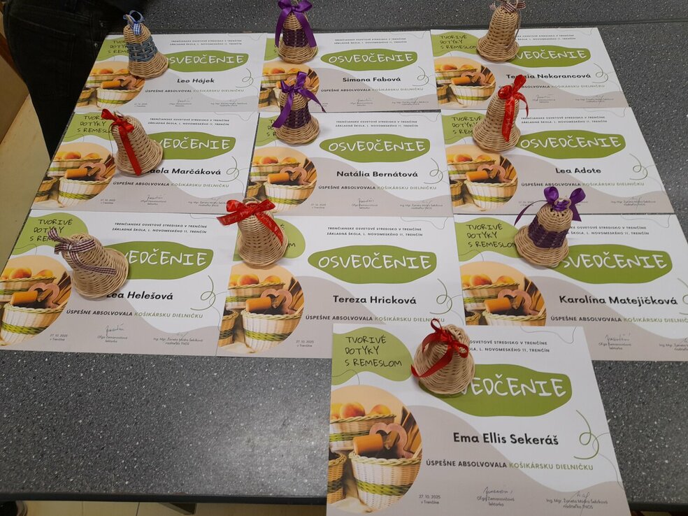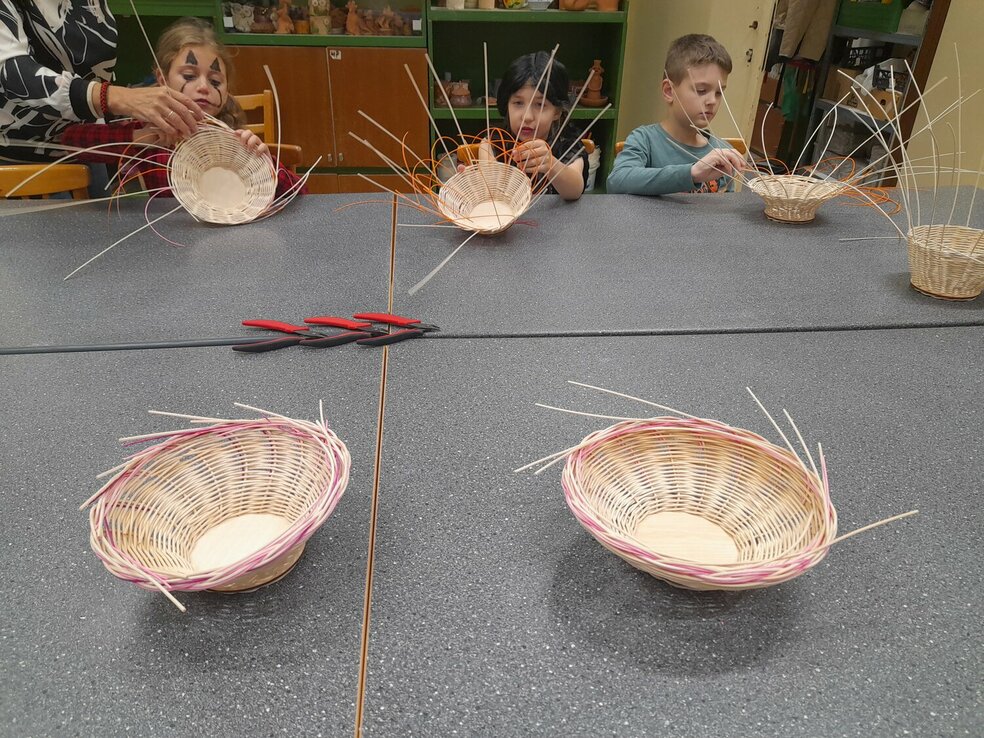 Ako sa pletú košíky? Na túto otázku hľadali a aj našli odpoveď malí remeselníci na dvoch októbrových tvorivých dielničkách v rámci projektu TVORIVÉ DOTYKY S REMESLOM. Pod vedením lektorky Oľgy Zemanovičovej sa deti zoznámili so starým tradičným remeslom – košikárstvom. Pracovali s veľkou trpezlivosťou a radosťou. Výsledkom sú ich vlastnoručne upletené košíky z pedigu, na ktoré môžu byť právom hrdé. Ďakujeme všetkým zúčastneným za tvorivú energiu a krásnu atmosféru.